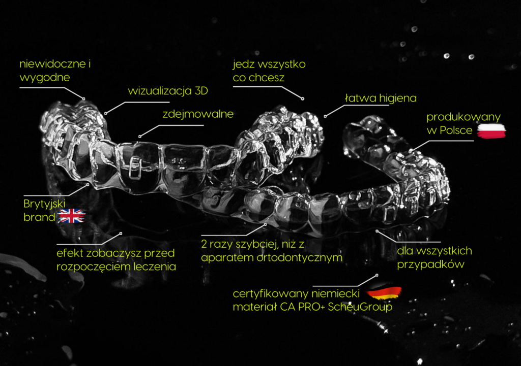 - Najwyższej jakości materiały na rynku i precyzyjne wykończenie alignerów